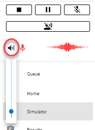 NOTE: Unless the "lock background audio" has been enabled for that scenario, you will have the option to change the volume of the background audio during simulation by clicking the speaker icon and using the blue slider bar that appears.